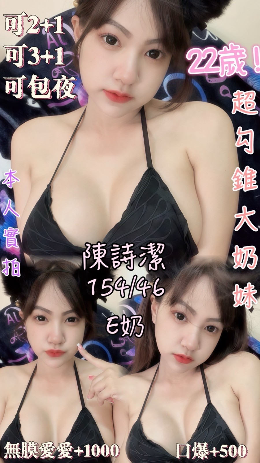 無套吹/共浴殘廢澡/親嘴/舌吻(視個人口腔衛生)/舔蛋蛋/按摩/六九/奶炮/胸磨臉/品鮑