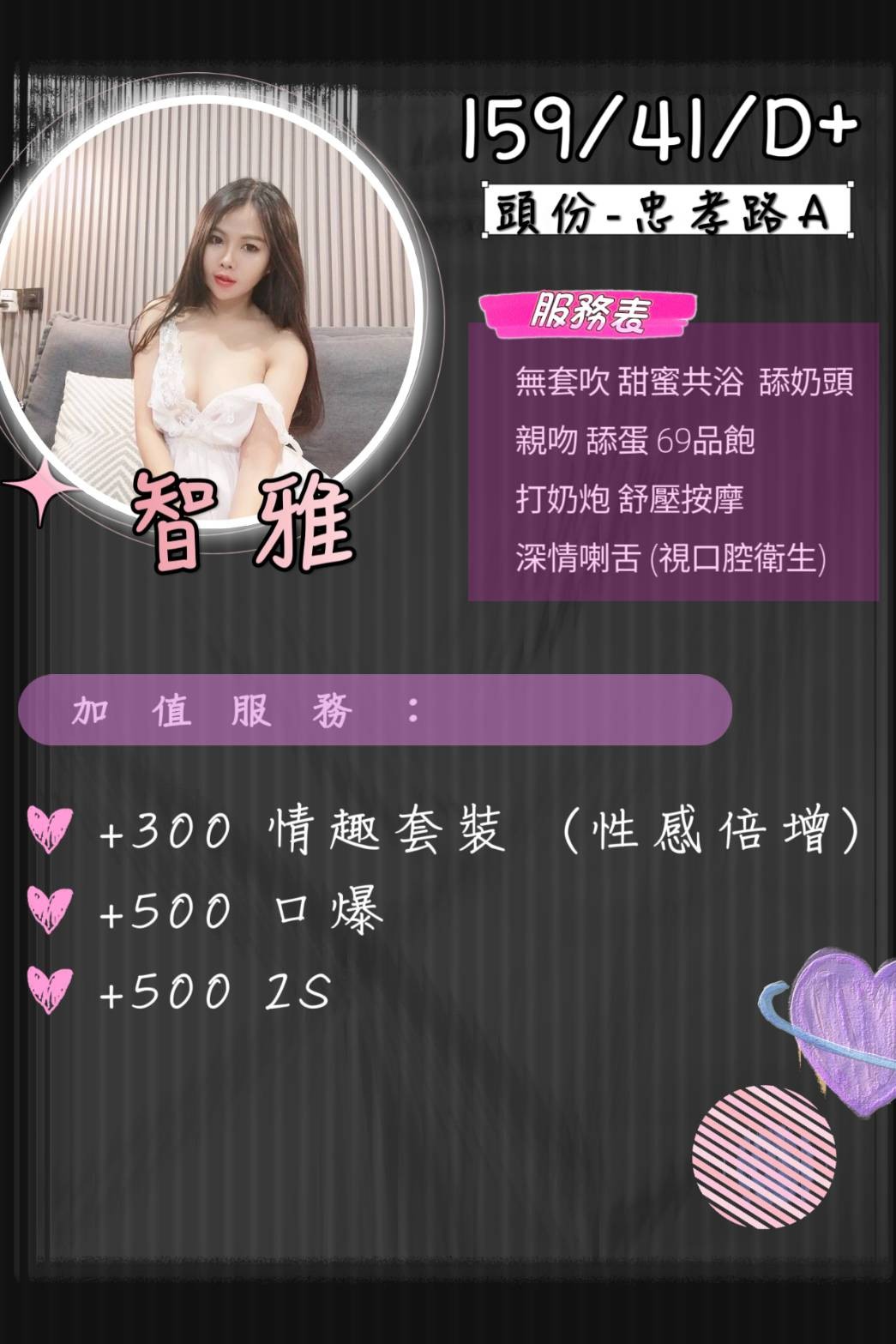 馬上約她 建議客戶提前一小時預約,臨時預約可能會遇到喜歡的女孩忙碌中 Line ID : ad348 TG ID : @aadd563