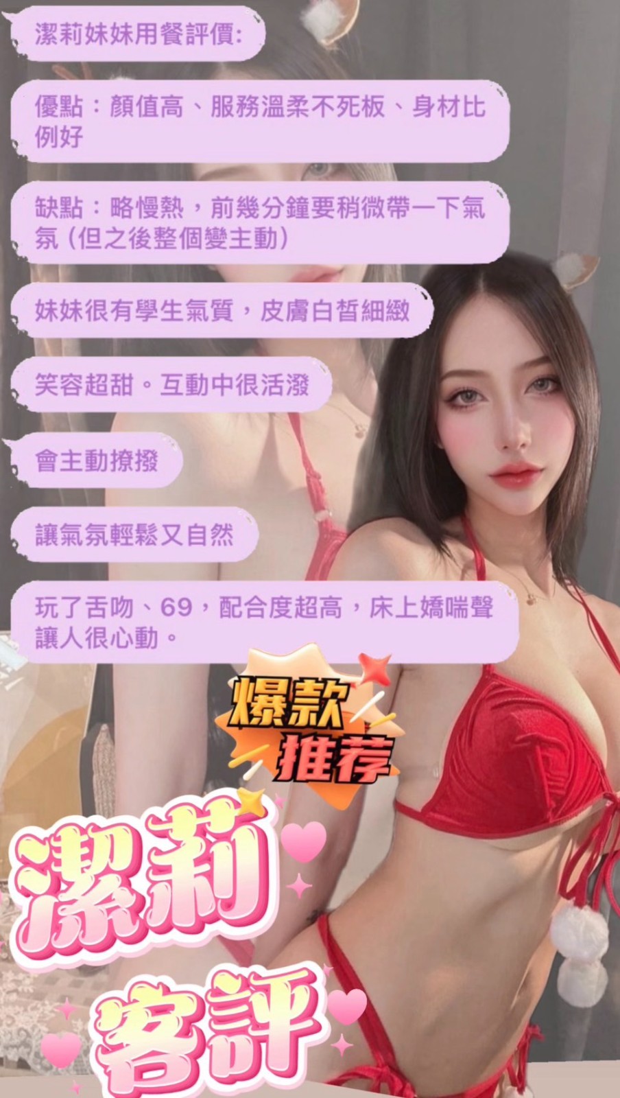 👍項目:無套吹/共浴/親嘴/舌吻/品鮑/奶炮/水中蕭/胸推/屁推/按摩